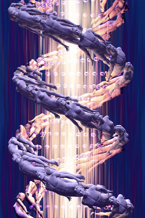 This conceptual image represents the double helix (spiral) of the